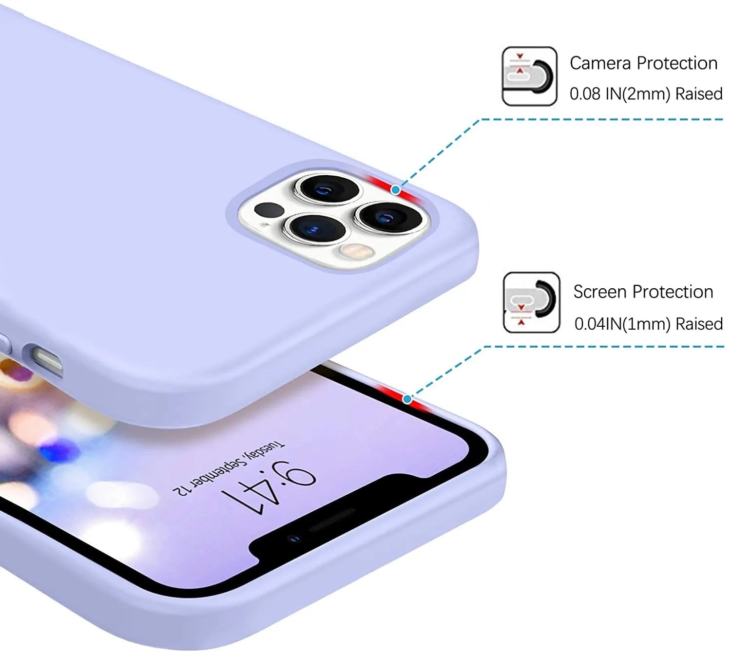 The phone case's edge lip to protect your screen and Camera from directly contacting surfaces. So you don't have to worry about laying the phone on the camera glass and scratching it.Soft Microfiber Lining: Soft and anti-skid microfiber lining on the interior of this Silicon Cases, protect your iPhone from abrasion and slide.